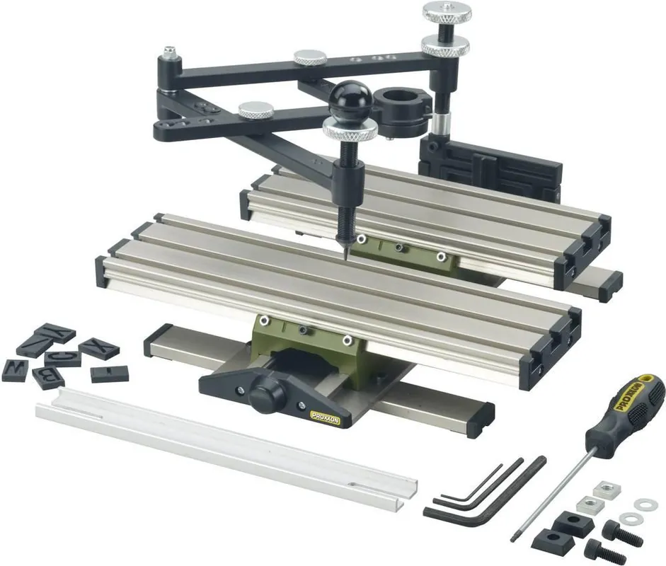 Poate fi utilizat inclusiv cu matrițe home-made sau a șabloanelor din comerț (plante, animale sau blazoane). Un număr de maxim 14 caractere poate fi prins în șina de ghidare (suportul de șabloane). Contururile șablonului sunt urmate cu precizie de elementul de ghidare (mânerul cu cap rotund).Modelul care se dorește a fi gravat, este redus în raporturile de 2:1 ; 3:1 ; 4:1 sau 5:1 prin simpla poziționare a două șuruburi. Piesa pe care se gravează poate fi prinsă pe masa de lucru unui set de cleme sau cu ajutorul unei menghine. Dispozitivul pentru gravat este compatibil cu toate mașinile Proxxon MICROMOT cu diametrul gâtului de prindere de 20mm.