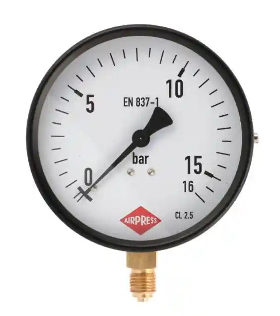Barometru cu diametrul de 100 mm pentru compresoare de 1/4″ cu un interval de măsurare de 0-16 bar.mai multe