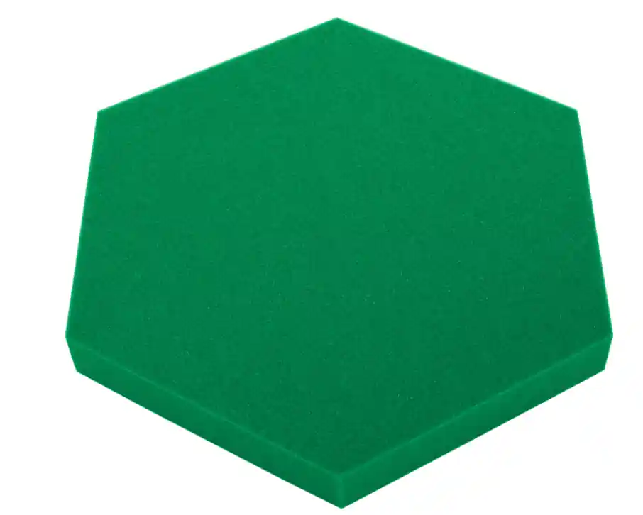 Panou acustic decorativ hexagonal 50×50 cm, 3 cm. Spumă PU Bitmat AF-25, reduce ecoul, instalare ușoară. Verde închis.mai multe