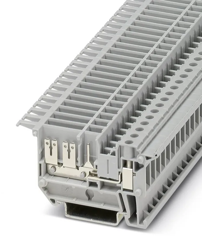 Bloc terminal de trecere cu conexiune cu șurub, conector plat, secțiune 0.2 mm² – 4 mm², AWG 20 – 14, lățime 6.2 mm, culoare gri, tip de montare NS 35/7,5, NS 35/15.