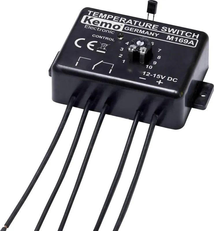 Comutator electronic de temperatură reglabil. Senzorul (Ø 5 mm) poate fi conectat la sistemul electronic de comandă printr-un cablu cu lungimea de maxim 1 m.