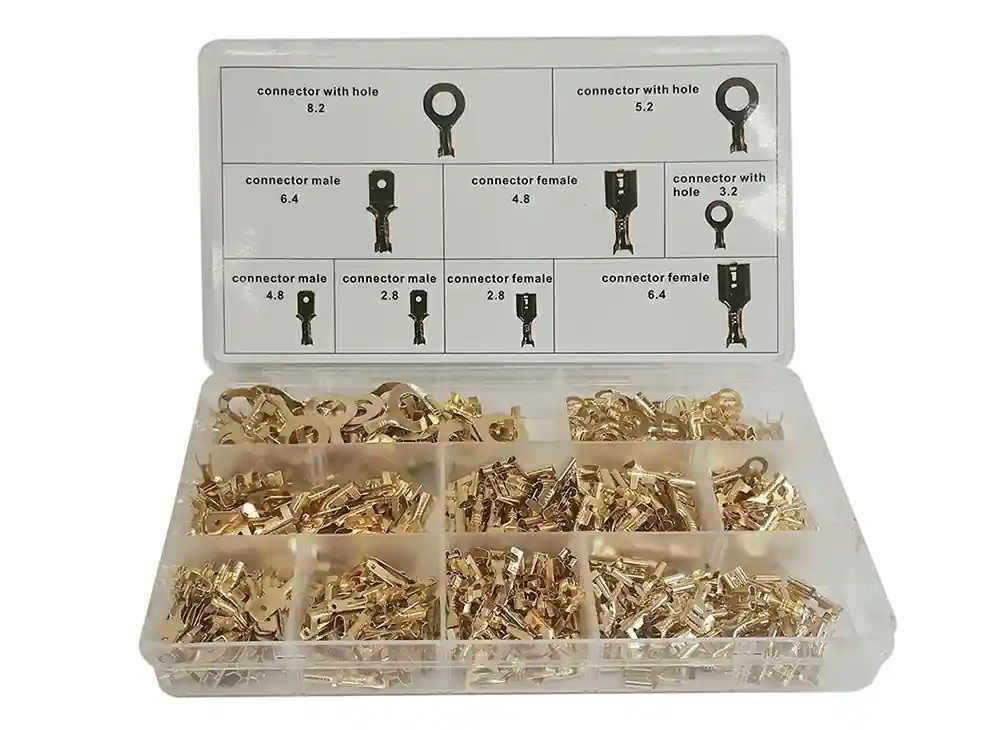 Un set de 450 de bucăți de conectori pentru cabluri auto de diferite tipuri.mai multe