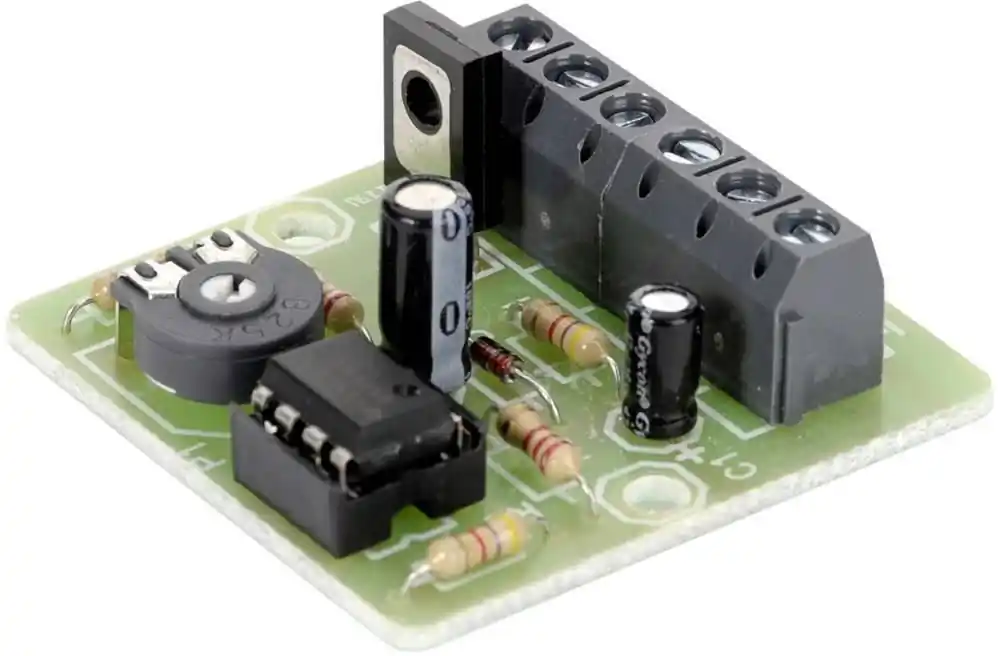 - Acest regulator automat, controlat de temperatură, este adecvat pentru ventilatoare standard de tensiune continuă, precum cele integrate pentru răcire în aproape orice PC. În locurile sensibile la temperatură se montează un termistor NTC, care controlează turaţia ventilatorului în funcţie de temperatură. Turaţia minimă este setată cu ajutorul unui potenţiometru.