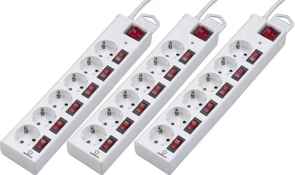 Livrare expres Set prelungitor cu protecție la supratensiune și întrerupătoare individuale, 6 prize, 1,5 m, alb, 3 buc., Renkforce