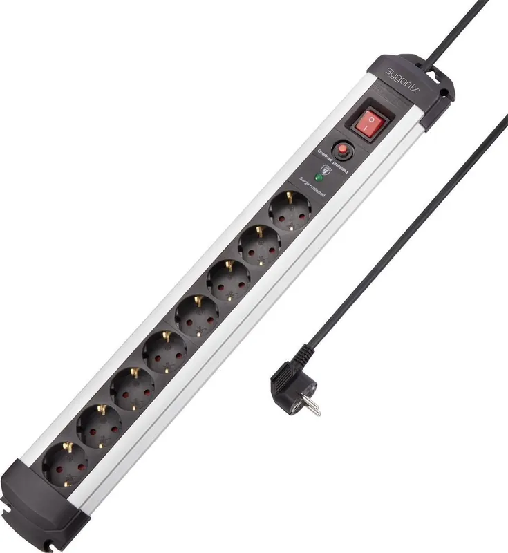 Prelungitor cu protecție la supratensiune 8 prize 1.40 m argintiu, negru Sygonix SY-4755614 Vezi acum