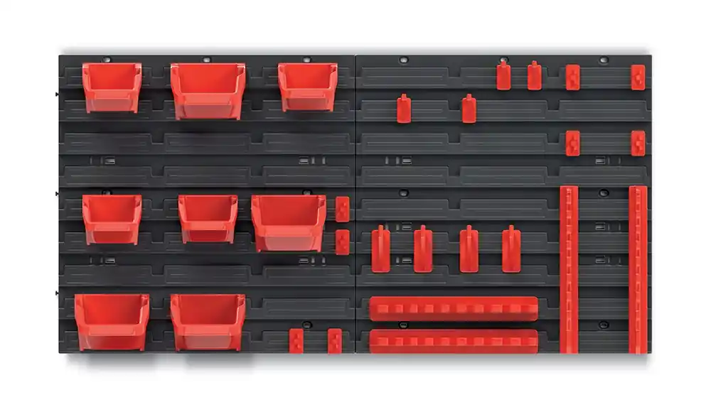 Perete practic pentru scule în ateliere, centre de service sau garaje. Dimensiuni perete: 78 cm x 39,5 cm + 8 cutii și 20 suporturi.