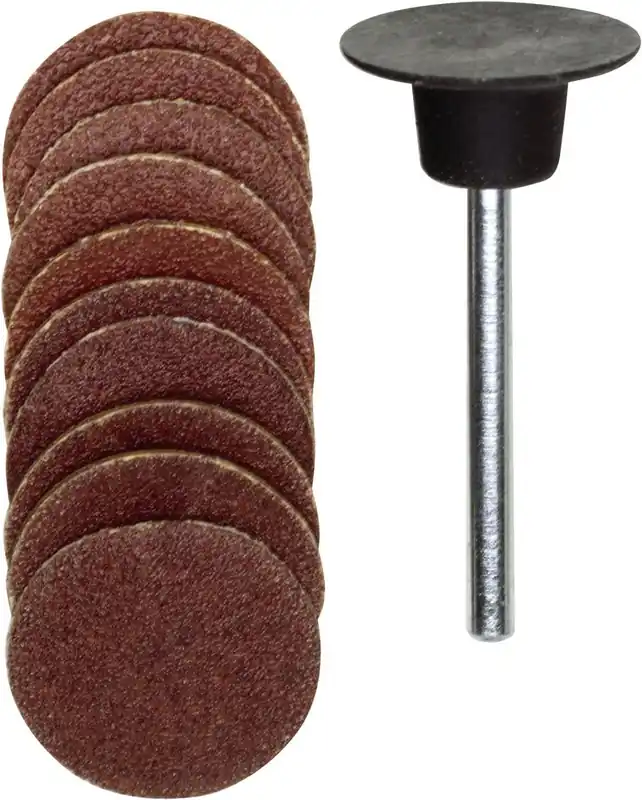 Cinci discuri GR 120 și cinci discuri GR 150 rezistente pentru diferite etape de șlefuit. Dimensiunea axului de prindere 3,0 mm. Diametrul discului este de Ø18. Pentru șlefuirea și lustruirea fontei maleabile, fontei gri, oțelului călit, metalelor neferoase, metalelor, lemnului și plasticului.