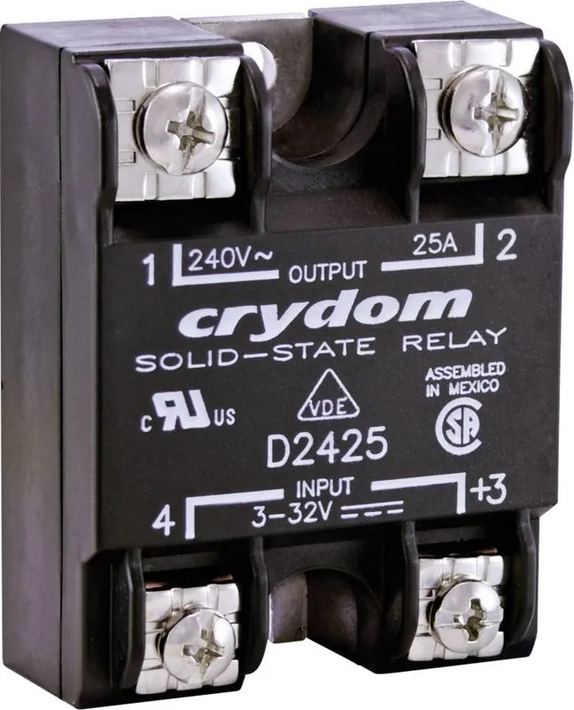 - Releu electronic cu ieșire SCR optic separată pentru sarcini de comutare mari în aplicaţii industriale. Carcasă industrială standard tip ”puc de hochei” pentru montaj pe șasiu sau radiator.