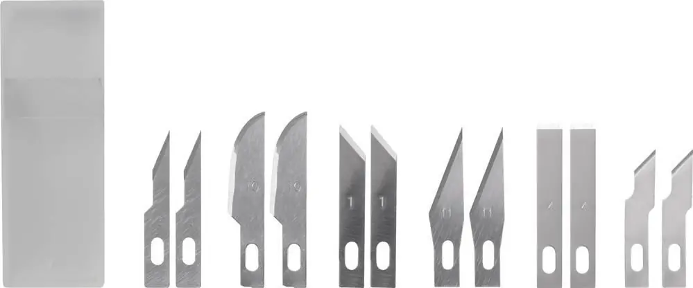 Acest set conţine 12 lame din oţel inoxidabil de înaltă calitate. Ideal pentru lucrări fine de filigran şi tăieri precise.