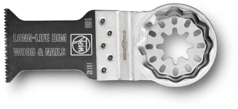 Lamă de fierăstrău bimetal adecvată pentru toate materialele din lemn, gips-carton şi mase plastice. Durabilitate excelentă, calitate ridicată a tăierii şi progres bun al lucrului. Extrem de robustă, neafectată de cuiele care se găsesc în lemn (până la aprox. Ø 4 mm), zidărie etc. Suport universal Starlock, potrivit pentru majoritatea uneltelor multifuncționale. Lăţime medie, formă croită pentru viteză optimă de tăiere şi evacuare bună a așchiilor.